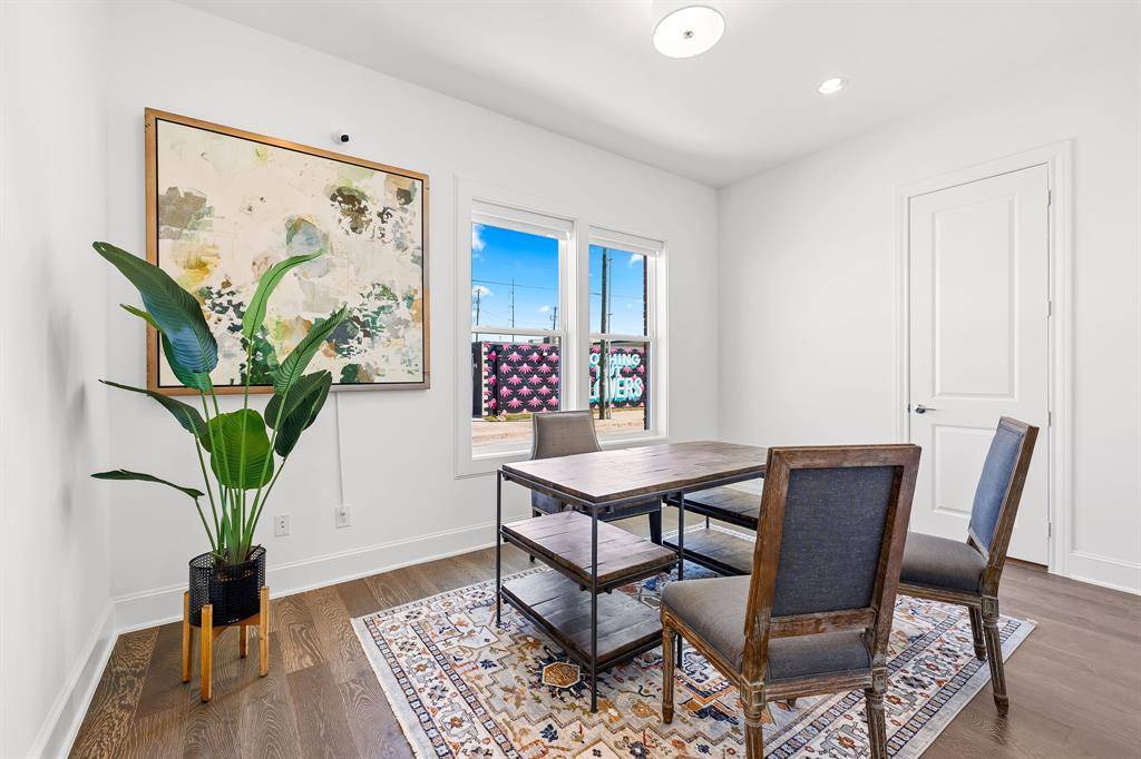 Welcome to Foundry Row, an exclusive collection of 8 townhomes in Fort Worth's vibrant West 7th District. This elegantly designed residence features an open floorplan with high-end finishes ideal for entertaining. The main level boasts soaring 12-foot ceilings and a 10-foot sliding glass door that seamlessly extends your living space outdoors. The gourmet kitchen is equipped with Bosch stainless steel appliances, quartz countertops, a stylish tile backsplash, and soft-close cabinetry. The serene primary suite includes a large drop-in tub, walk-in shower, and extra spacious closet. Throughout the home, upgraded engineered hardwoods enhance the sophisticated ambiance, while the private rooftop deck offers a quiet retreat with sweeping views of Downtown Fort Worth. Located just minutes from the lively West 7th District, you'll enjoy convenient access to dining, shopping, museums, entertainment, and more. Experience the perfect blend of luxury and sustainability in this exceptional home. For a limited time, buyers may receive a fixed interest rate as low as 4.99% through one of InTown Homes' preferred lenders. PLEASE GO TO MODEL HOME FOR ALL OPEN HOUSES - 201 CARROLL ST.