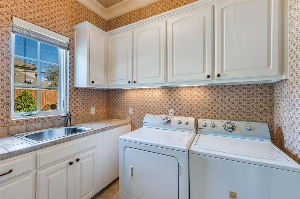An oversized two-car garage with built in cabinetry and a detached storage room complete the home.