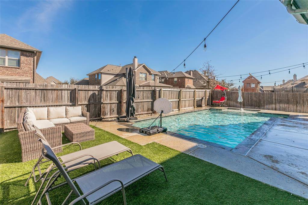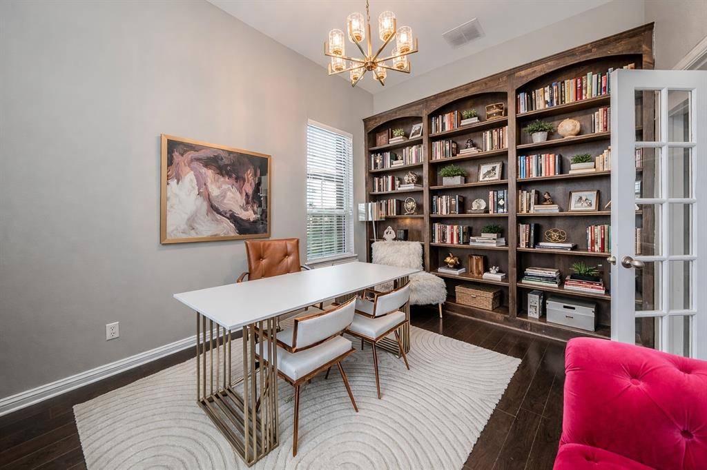 The backyard is a standout feature, showcasing an incredible pool complete with a swim up bar, creating the ultimate outdoor experience. Turf landscaping provides year round greenery with minimal maintenance. A wrought iron gate separates the patio from the pool area, offering an added layer of safety and peace of mind. Inside, you will find generously sized secondary bedrooms and a dedicated office featuring built in bookshelves, perfect for working from home or additional flex space. The primary suite is oversized and designed to feel like a private retreat, offering a relaxing escape at the end of the day. Additional highlights include owned solar panels for energy efficiency and long term savings, a roof that is only a few years old, and a rare side entry three car garage that enhances both functionality and curb appeal.