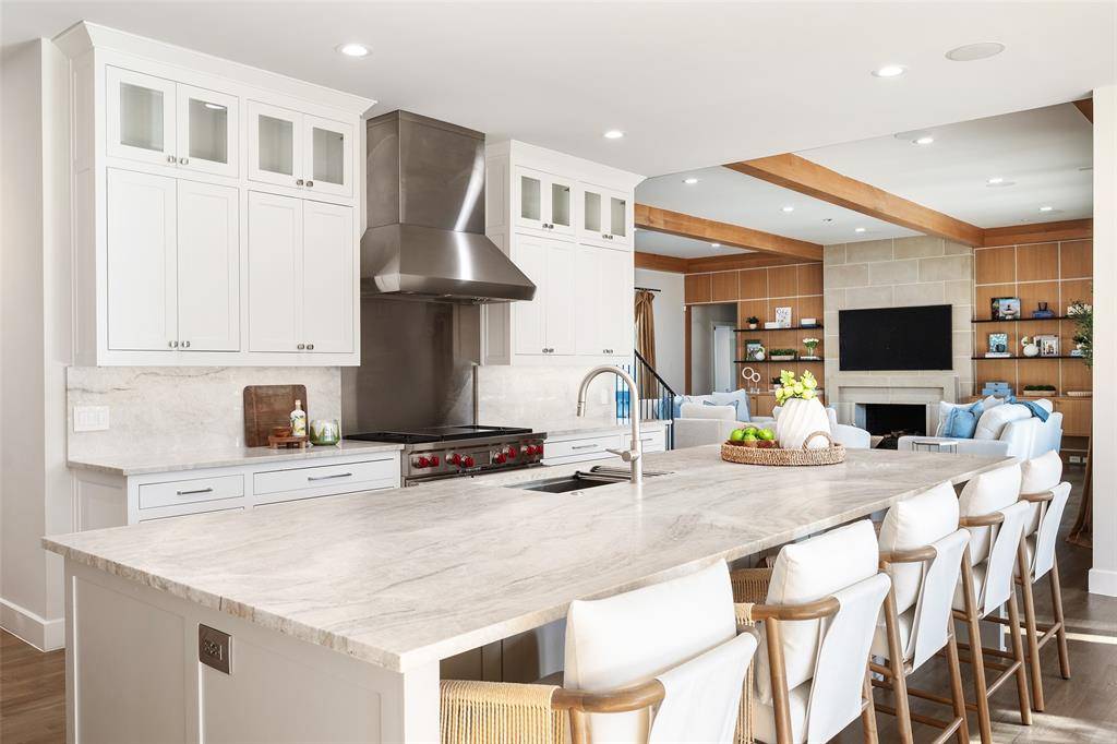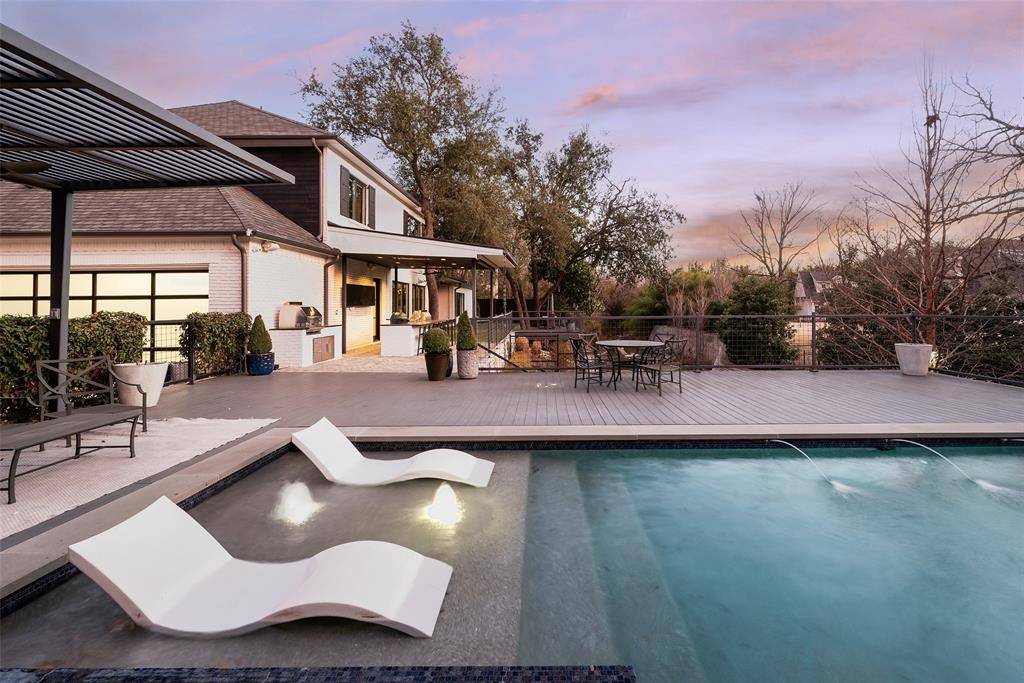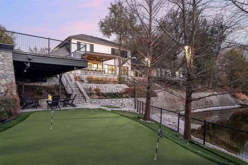Designed by Studio Thomas James this home sits on .061 acres with peaceful creek views and a canopy of mature trees, effortlessly blending refined elegance with its natural surroundings. Inside, the chef's kitchen impresses with premium appliances, an expansive island with dual dishwashers, and striking Taj Mahal quartzite countertops. The primary suite serves as a private retreat, featuring a spa-inspired bath with a double steam shower and a separate soaking tub. A distinguished study and an additional bedroom complete the main level. Upstairs, three bedrooms and a spacious game room with a wet bar offer plenty of room for relaxation and entertainment. Outdoors, multiple living areas create a true resort-style experience, highlighted by a dramatic terraced backyard, a cantilevered pool, a covered patio with fireplace and drop-down screens, a putting green, and a fully equipped outdoor kitchen. This exceptional residence showcases thoughtful design throughout, presenting a rare opportunity to enjoy modern luxury in a tranquil, nature-filled setting.