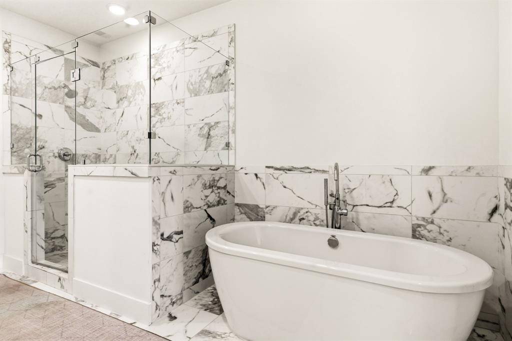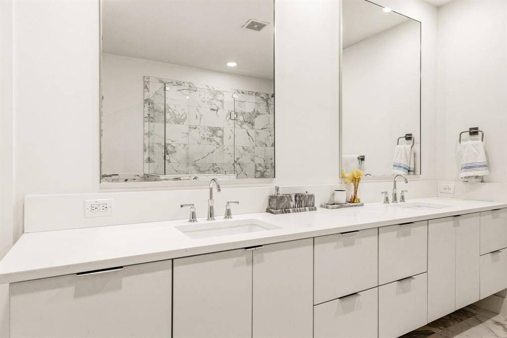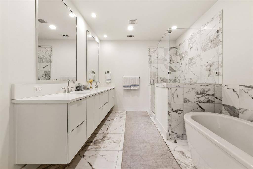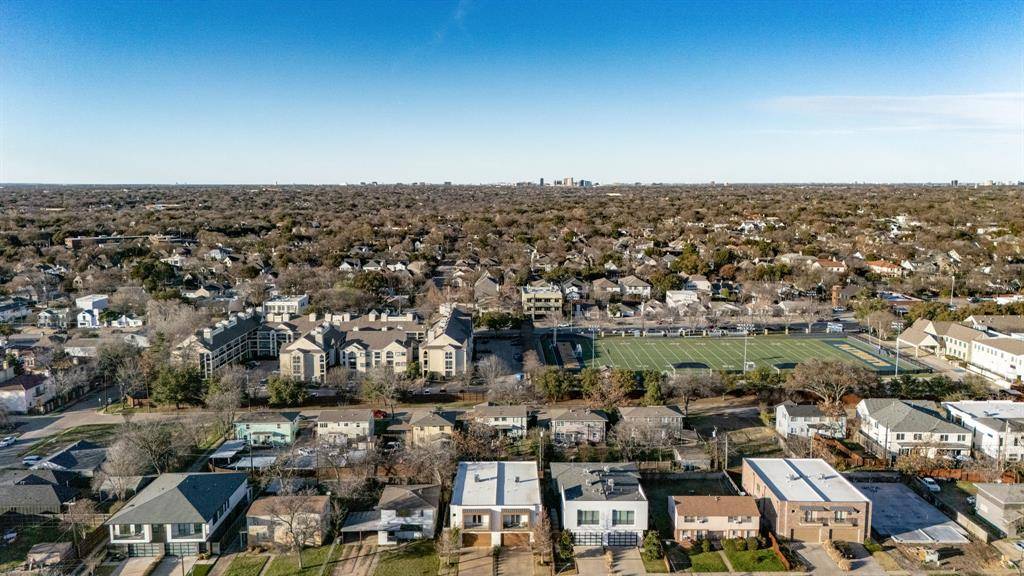 Steps from the best tables in Dallas — José, Shinsei, Lovers Seafood & Inwood Tavern — this stunning Olerio-built home in coveted Lovers Lane Heights delivers the in-town lifestyle you've been waiting for. Sophisticated, move-in ready & rare in its scale for the neighborhood, 4827 Newmore Ave is the kind of property that doesn't come along twice. The generous open floor plan on the main level flows effortlessly from living to dining to a chef's kitchen anchored by a large island with quartz countertops, a walk-in pantry & full KitchenAid appliance suite including a gas range & tankless water heater. Rich white oak hardwoods run throughout, a gas fireplace with sealed combustion anchors the living room, and walls of Marvin Integrity windows flood every corner with natural light. Oversized sliding doors open directly onto an oversized covered patio & low-maintenance turfed backyard — a seamless outdoor entertaining extension of the home that requires virtually no upkeep. Upstairs, the primary suite is a genuine retreat: a spacious 16x18 room with a private walk-out balcony, custom walk-in closet with built-in cabinetry & a spa-inspired en-suite featuring a freestanding soaking tub, separate shower & dual vanities with Kohler fixtures. Two well-proportioned guest bedrooms (each 12x17), a full bath & a dedicated flex suite — ideal for a home office, gym or lounge — round out the upper level, along with a large laundry room with ample built-in storage. Additional highlights: pre-wired sound system, owned security system with gate & extra-deep 2-car garage plus 2 additional driveway spots — exceptional parking for in-town Dallas. No HOA. Walk Score 80. Move-in ready. Don't miss this one.