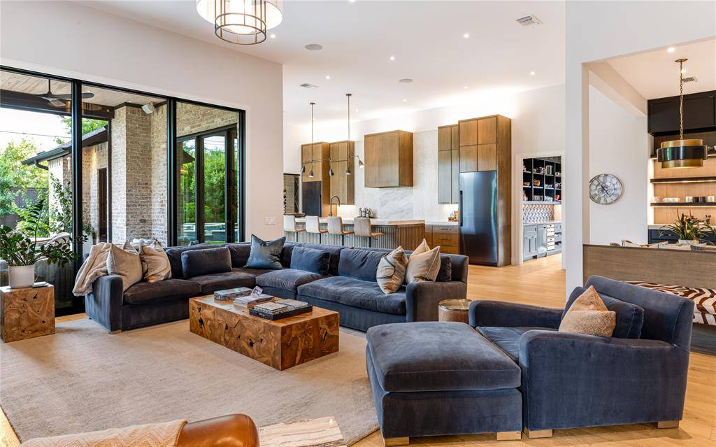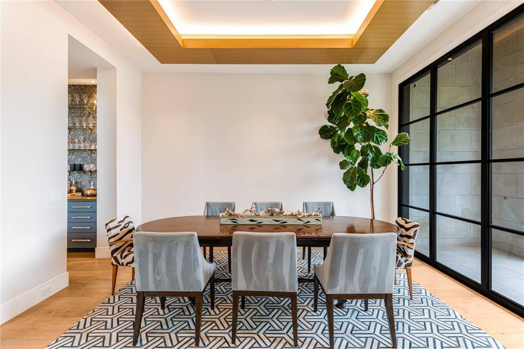 From the moment you cross the threshold of the oversized glass-and-iron doors, a sense of profound arrival takes hold, pulling you into an atmosphere where soaring 13-foot ceilings meet the inviting warmth of layered designer finishes. The heart of the home pulses with executive energy, anchored by the tactile richness of Taj Mahal quartzite and a glass-encased wine salon that transforms your collection into a sophisticated work of art. Every corner reflects curated prestige, from the elevated scullery that ensures seamless entertaining to the glass-walled office that serves as a transparent retreat for deep focus. Retreat to a primary suite that feels like a private veranda, where the soft glow of the hearth and premium Phillip Jeffries wallpaper create a haven of total seclusion overlooking lush landscaping and direct access to pool. Outside, the environment is defined by the ambient glow of a designer fire feature and the sophisticated comfort of an al fresco oasis, offering a lifestyle of seamless indoor-outdoor luxury. This estate is a masterclass in modern living—a residence where every detail reflects a standard of uncompromising excellence.