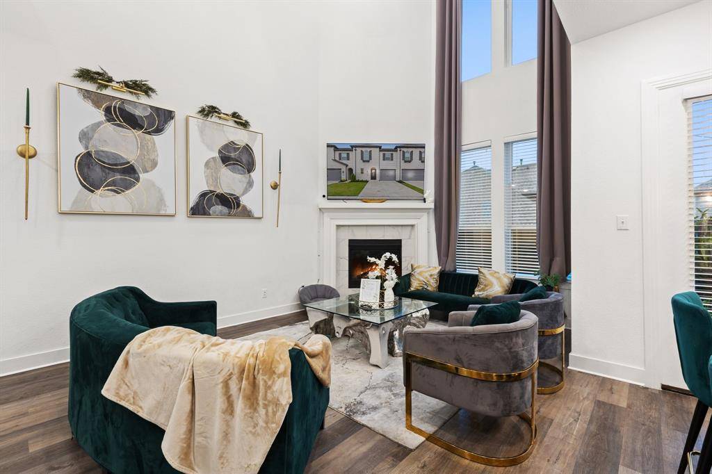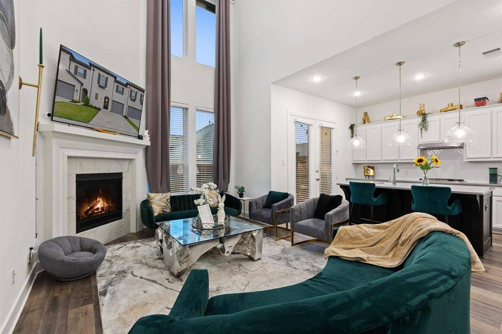 Built by Highland Homes in sought after Devonshire Village, this residence pairs open concept design with everyday functionality. A dramatic staircase entry leads to a spacious living area anchored by a Heatilator fireplace, flowing easily into the dining space and kitchen.