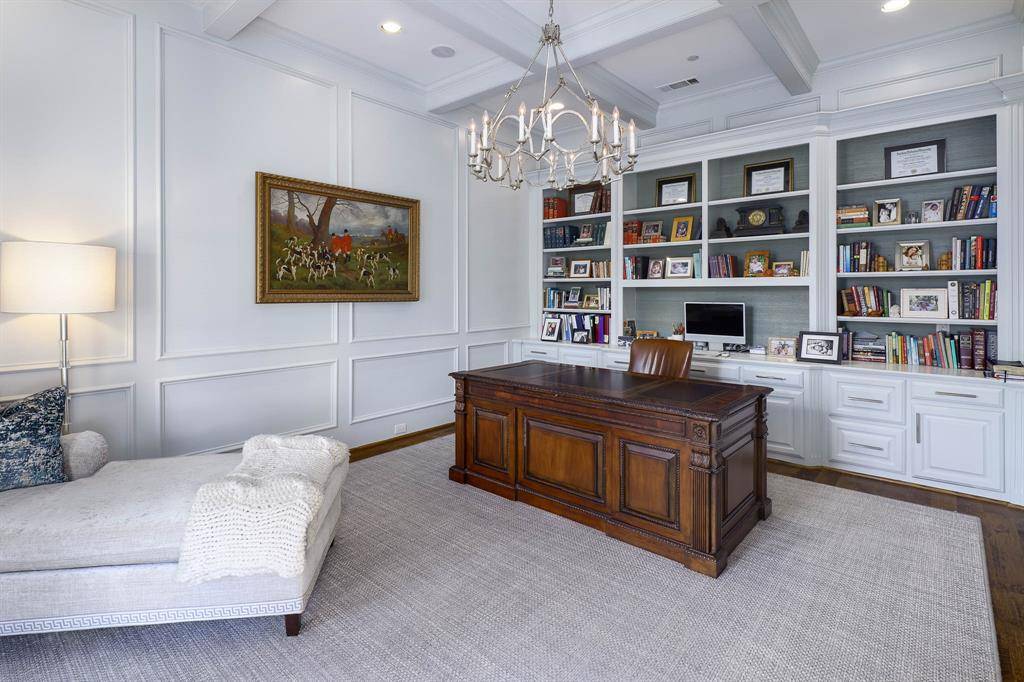 The main level is designed for elegant yet functional living, with an open, flowing floor plan that accommodates both formal entertaining and everyday comfort. Spaces include refined formal living areas, a private library or office, a formal dining room and multiple interconnected gathering rooms.