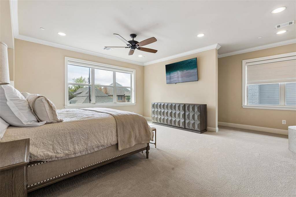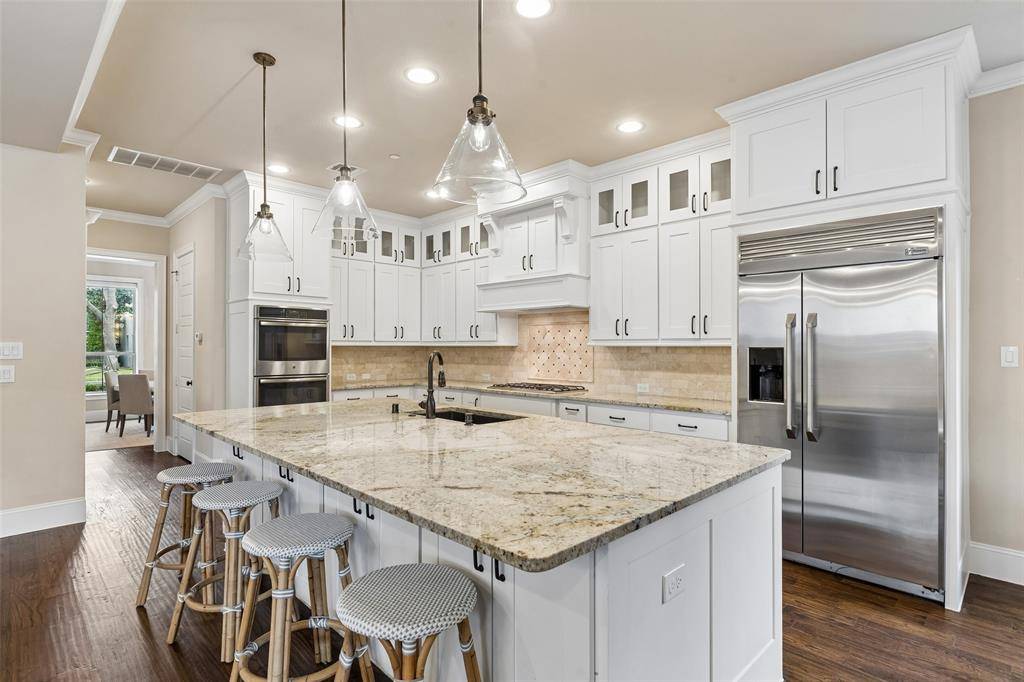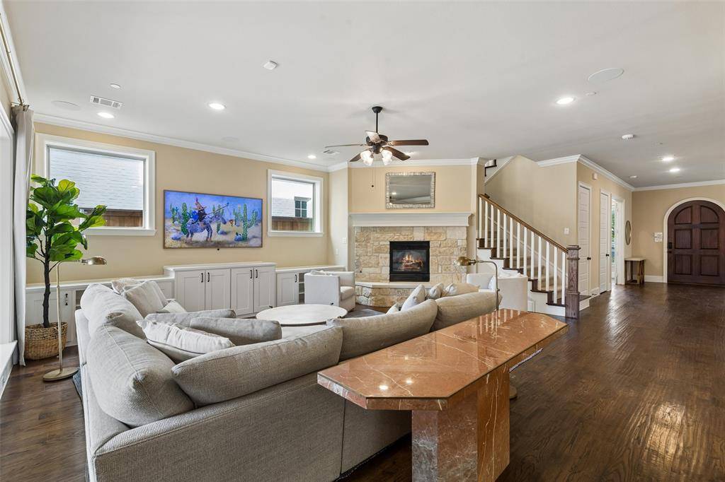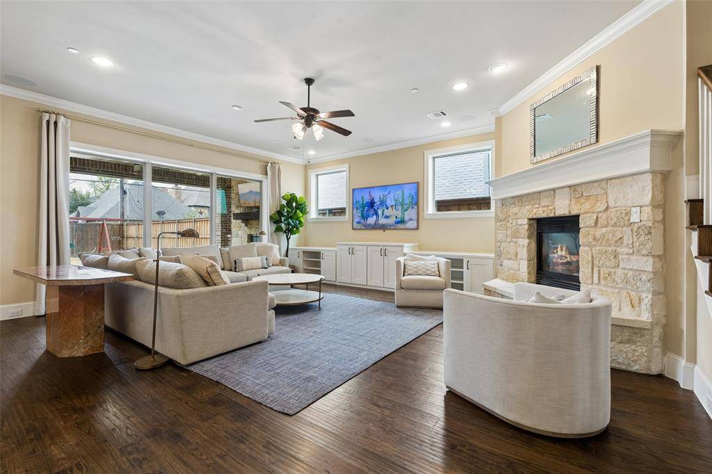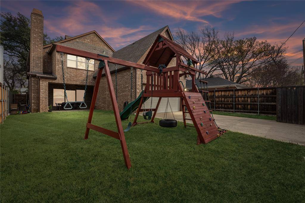 Exquisitely designed and beautifully appointed, this breathtaking University Park residence blends timeless elegance with modern luxury on a welcoming, tree-lined street. Soaring ceilings and abundant natural light create an airy, sophisticated ambiance, while rich hardwood floors and designer finishes add warmth and refinement. The first floor is an entertainer's dream, featuring expansive open living spaces that seamlessly connect the inviting living room with its stately fireplace, the chef's kitchen, and a bright breakfast nook. The kitchen boasts a large island with seating, built-in appliances, and exquisite designer touches. A formal dining room sets the stage for memorable gatherings, while an elegant home office provides a quiet, sophisticated workspace or 6th bedroom. The peaceful primary suite is a true retreat, offering a spa-like bath with separate vanities, a large soaking tub, a separate shower, and an extraordinary custom walk-in closet. Generously sized bedrooms and a family room offer comfort, privacy, and versatile spaces for relaxation and fun. Outside, a beautifully landscaped backyard provides inviting outdoor living areas, a playground, and a perfect setting for entertaining or everyday enjoyment. Ideally located within walking distance to Snider Plaza, multiple parks, and top-rated University Park schools, with easy access to North Central Expressway and premier shopping and dining, this home delivers the ultimate combination of luxury, convenience, and lifestyle. Breathtaking inside and out, this remarkable residence is a must see.