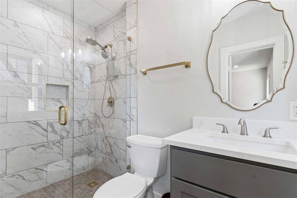 The residence spans over 4,364 sq ft of meticulously renovated interiors. Every aspect of the home has been updated with precision and care—from recent plumbing and electrical systems to double-pane windows, designer kitchens with quartz countertops, and premium gas appliances. The hardwood floors in the primary units have been artfully restored, infusing warmth and historic charm into the contemporary layout. Each main unit features 2 bedrooms and 2 bathrooms, expansive living and dining areas filled with natural light, and thoughtful architectural details throughout. The upstairs unit boasts an oversized primary suite with panoramic front-facing windows—your own private sanctuary.