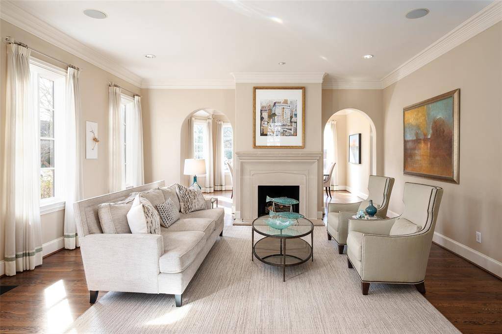 Behind a gracious façade, the home itself reveals a refined transitional renovation by Kerry Ketner, where timeless architecture meets modernized interiors. With a dedicated office and 5 generous bedrooms with en-suite baths, it offers comfort and seclusion for family and guests. A series of elegant living spaces and a formal dining room flow effortlessly into an open kitchen and breakfast area designed for daily living as much as gracious entertaining. Expansive windows frame the verdant grounds and draw natural light throughout the interiors, while the home's orientation toward the adjacent parcel creates a seamless visual and spatial dialogue between indoor living and the extraordinary grounds beyond.